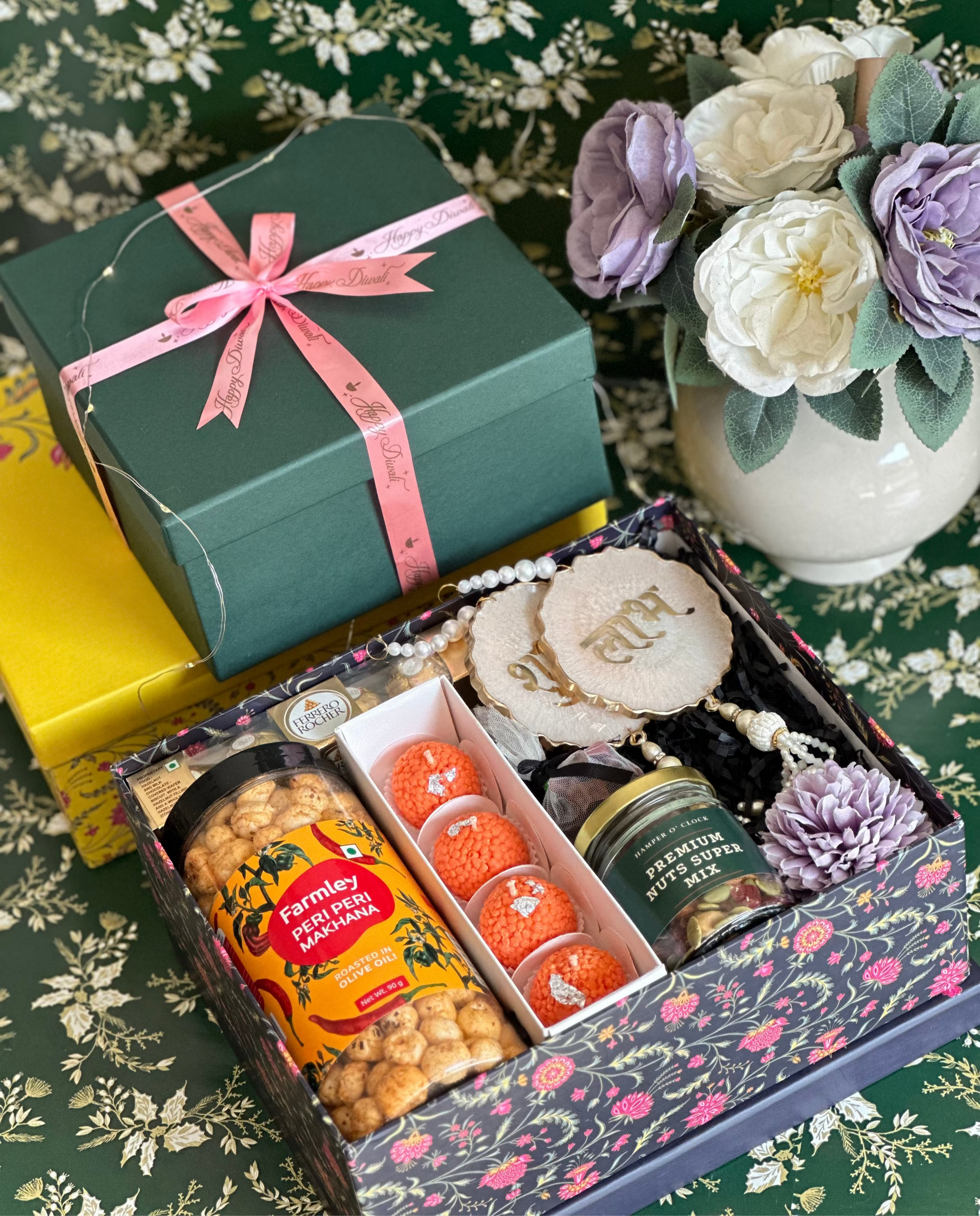 - Printed festive box with confetti